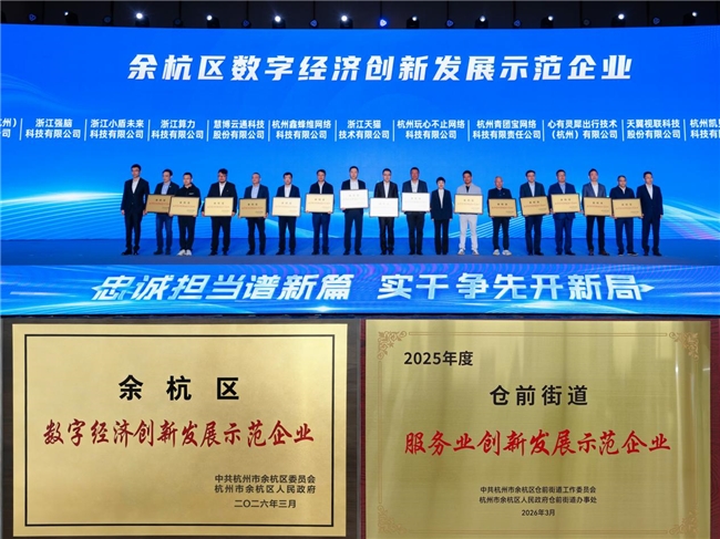 大会现场,为表彰在区域经济发展中做出卓越贡献的企业力量,依次颁发了余杭区“高质量发展杰出贡献企业”、“经济发展突出贡献企业”、“数字经济创新发展示范企业”等一系列荣誉奖项。灵犀科技(全称:心有灵犀科技股份有限公司)旗下企业灵犀出行,凭借在行业数智赋能领域的深耕细作与创新实践,获评“数字经济创新发展示范企业”。同时,在次日召开的余杭区仓前街道经济高质量发展大会上,再次斩获“服务业创新发展示范企业”。