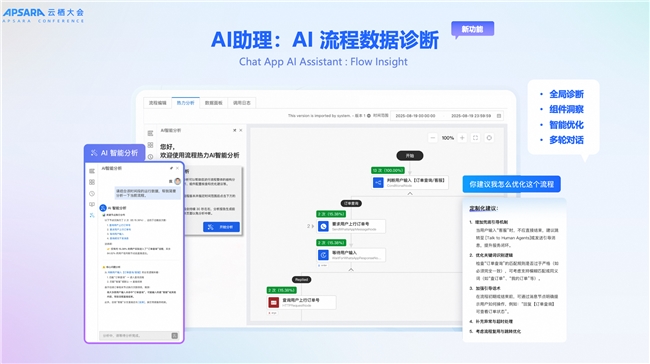 此次发布的“AI助理”在原有能力基础上实现智能化跃迁,推出“AI流程设计”与“AI流程数据诊断”两大功能。