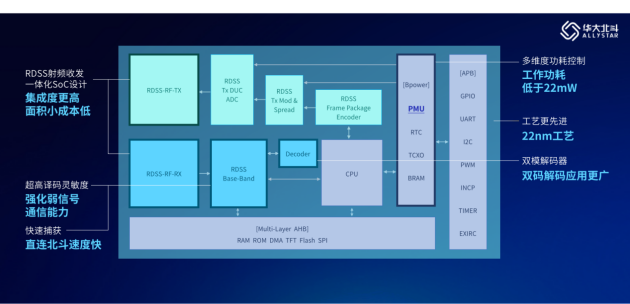 该款芯片集业界领先技术和指标于一身,通过22纳米先进工艺、射频收发一体化SoC设计、强化的弱信号通信能力、快速捕获信号能力、双模解码能力以及基于超低功耗技术带来的长续航能力,为行业及大众领域客户提供更具性价比、更具竞争力的北斗短报文芯片级解决方案。