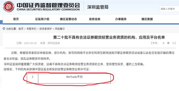 近日WeTrade众汇作为一家可提供外汇交易服务的机构被证监会深圳管局点名,其未获得中国证监会核发的经营证券期货业务许可证,存在利用互联网违规开展证券期货活动的情况,损害投资者合法权益,扰乱证券期货市场秩序。