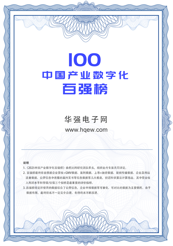 会议上揭晓了“2025产业数字化百强榜”,这也是托比研究院发布的第12份行业年度榜单。据了解,本榜单是托比研究团队基于企业新闻传播数据、企业营收+GMV数据、企业上市+融资数据、企业网站流量数据、裁判文书等5大维度,经过科学算法最终排出。华强电子网此次能够荣登“2025产业数字化百强榜”,不仅彰显了华强电子网在电子元器件产业领域的创新实力和行业贡献,也是对其专业能力的高度认可。一同入榜的还有阿里巴巴B2B、国联股份、汇通达、建发云钢、华能智链、欧冶云商、上海钢联、中农网等知名企业。
