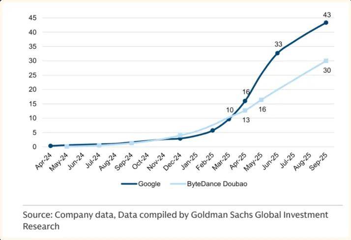 同时,中国大模型能力亦呈现了全面释放态势,中国在多模态、开源(超越美国世界第一)、推理等多个维度算力都呈现了显著的爆发趋势,其中,字节跳动(豆包大模型)最近报告显示,其用于AI推理的日均Token使用量在9月份已激增至30万亿以上,仅次于美国谷歌Gemini同期的43万亿。