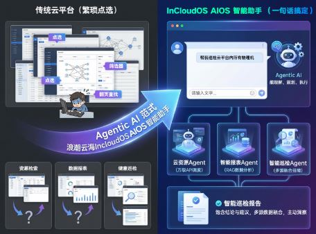 面对传统交互模式的诸多痛点,企业亟需一种更高效、智能的运维解决方案。浪潮云海InCloud AIOS前瞻性布局,基于“Agentic AI”范式推出了浪潮云海AI助手。它不再是一个被动的问答机器人,而是一位能理解、规划、执行的AI运维专家。它将自然语言指令转化为实际的资源操作、报表分析与智能巡检,彻底改变“点、选、填”的传统模式,专治各种运维焦虑。